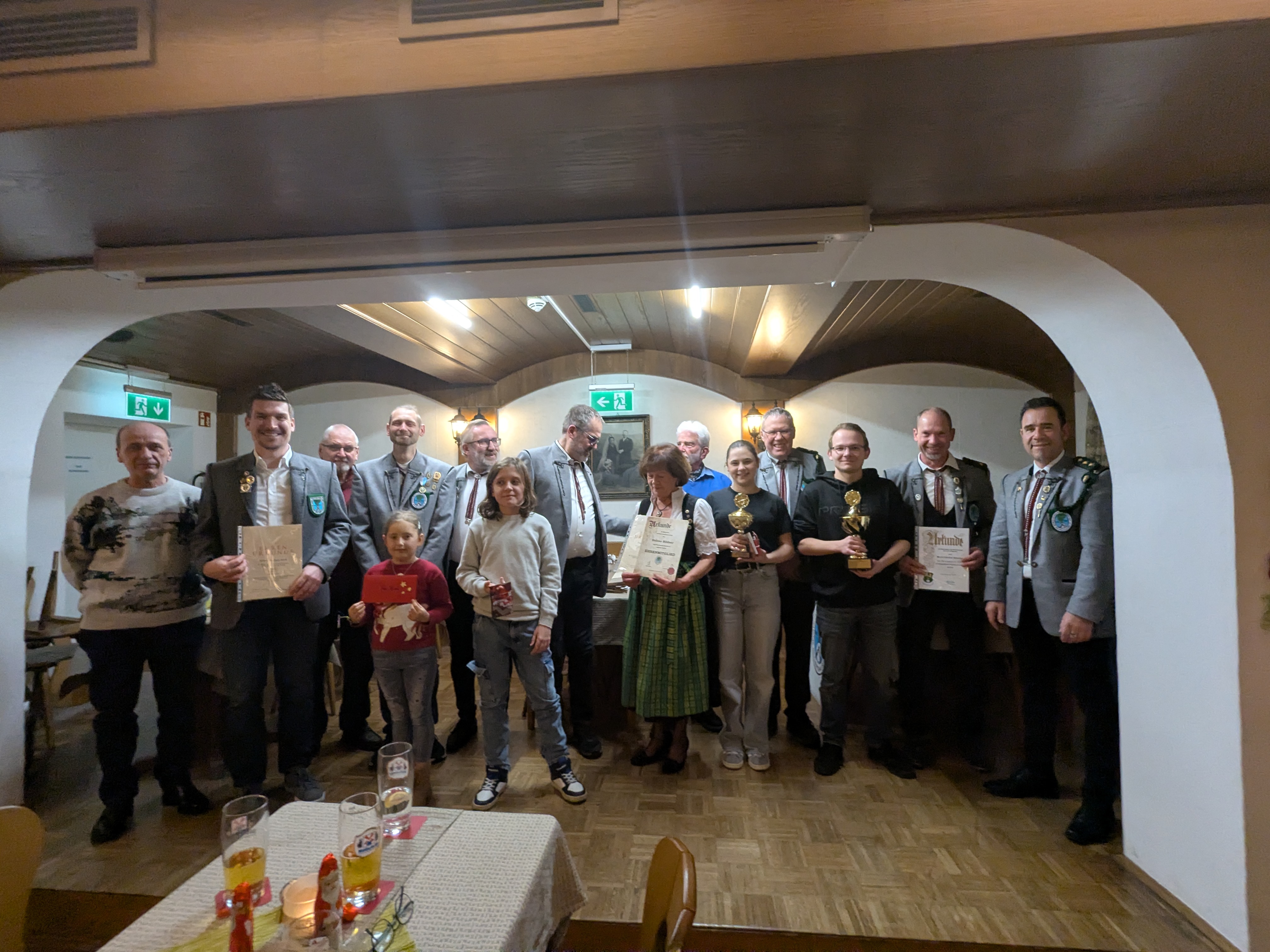 Auf dem Foto alle Geehrten und Sieger mit 1. Schützenmeister Laurent Boissat (rechts im Bild) und 2. Schützenmeister Klaus Wegener (4. von rechts). Ehrungen bei Weihnachtsfeier der Schützen Die Weihnachtsfeier […]